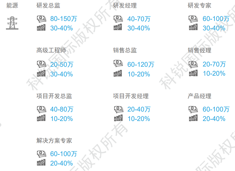 薪酬趋势:行业整体薪酬趋稳,自然涨幅在8-12%,跳槽涨幅在20-30%。能源互联网领域资深人才紧缺,部分职位薪资涨幅可达50%,甚至更高(文中部分数据是猎头公司evo真人视讯国际专家顾问的分析预测,供企业和猎头招聘参考)
